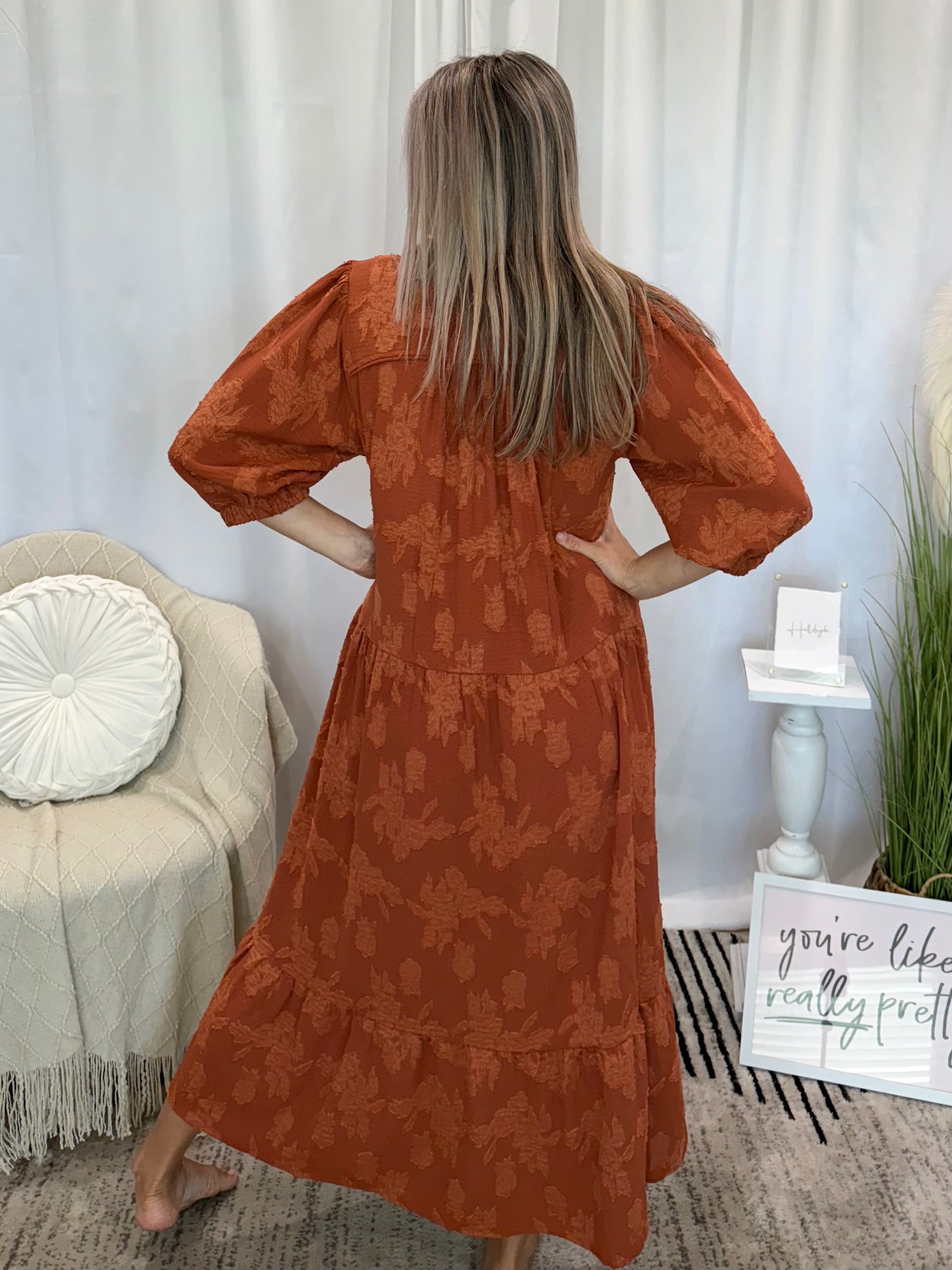Burnt orange midi length dress. Runs true to size